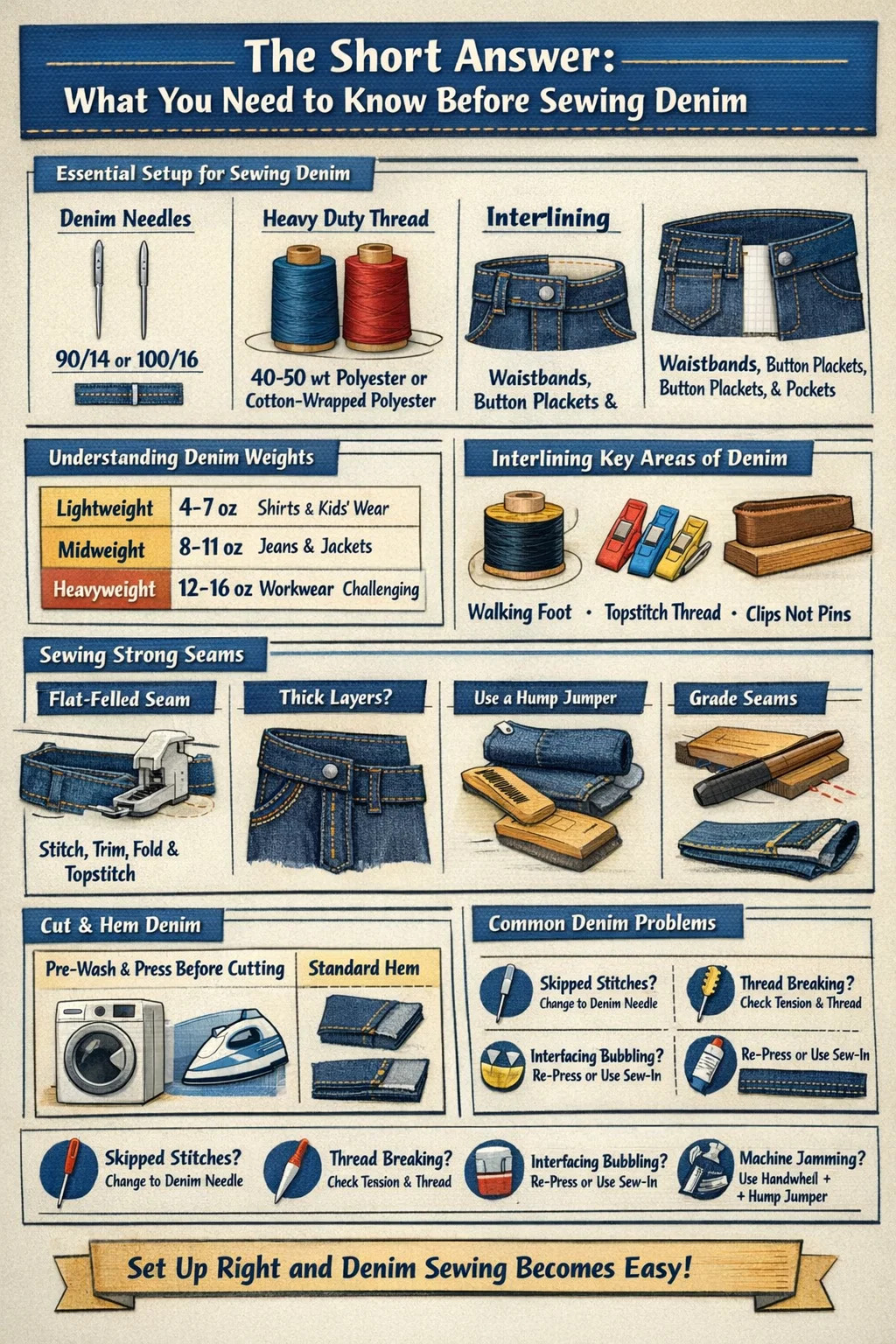 Menjahit denim benar-benar dapat dilakukan di rumah, bahkan dengan mesin jahit standar—tetapi hanya jika Anda menyiapkan alat dan bahan yang tepat sejak awal. Kesalahan paling umum adalah penggunaan jarum yang salah, mengabaikan berat benang, dan melewatkan interlining di tempat kain membutuhkan dukungan struktural. Lakukan ketiga hal tersebut dengan benar, dan denim akan berubah dari frustasi menjadi mudah diatur.