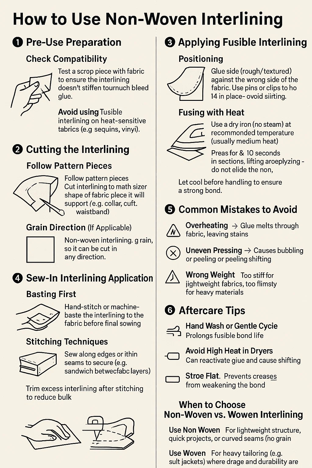 Beberapa interlining menyusut saat dipanaskan-pre-wash atau uap sebelum memotong untuk mencegah warping.