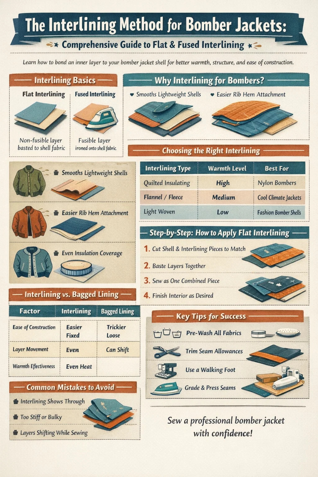 Panduan ini menguraikan metode interlining secara rinci: apa itu, apa perbedaannya dengan lapisan yang dijahit bebas, bahan interlining mana yang cocok dengan kain bomber, catatan konstruksi langkah demi langkah, dan kesalahan umum yang harus dihindari. Jika Anda bertanya-tanya apakah proyek pengebom Anda dapat mengabaikan sisipan lapisan tradisional dan memilih sesuatu yang lebih terintegrasi, baca terus.